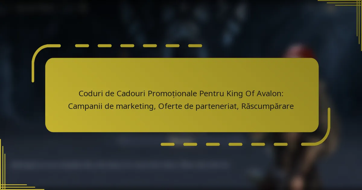 Codurile de cadou exclusive pentru King of Avalon sunt adesea disponibile prin intermediul diverselor parteneriate și campanii de marketing. Aceste colaborări nu doar că îmbunătățesc implicarea utilizatorilor, dar oferă și jucătorilor recompense valoroase în joc.